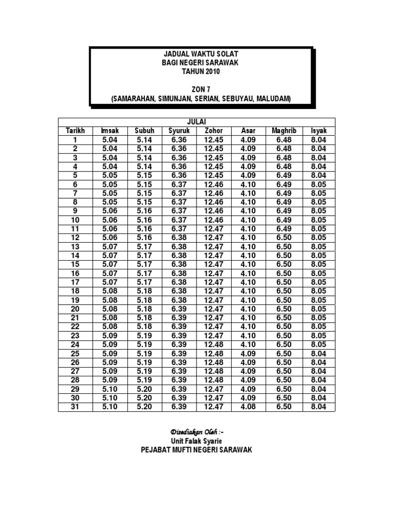 Jadual Waktu Solat Bagi Negeri Sarawak Tahun Pdf